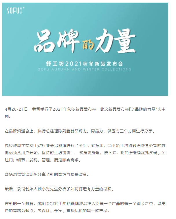 品牌的力量|舒工坊2021秋冬新品發(fā)布會舉行